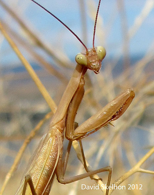 The blackness dissolves and a light appears in my head, gradually brightening to a dazzle. My brain forces my eyelids to part, and before me, just above the dirt I see withered brown blades of grass against a blue sky embedded with fluffy clouds. But wait, camouflaged against the grass, six inches from my eyes, there’s a stick-like insect looking straight at me. From my new level of humility it seems like a terrifying apparition – but is it? It looks too darn real!