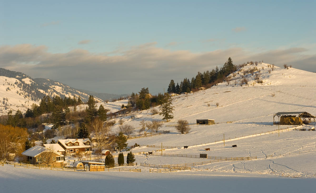 This is part of Coldstream, my rural community in the BC Okanagan. I took this photograph this afternoon while returning from a couple of hours of invigorating snow shoeing in -10C!